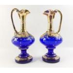 A lovely pair of highly decorated cobalt blue and gilt Bohemian handled vases. Each standing approx 20cm high and in excellent undamaged condition. A gorgeous pair of vases.