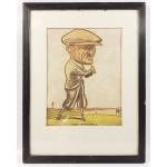 Three reproduction framed CHURCHMAN cigarettes famous golfers series by MEL, includes CGH Tolley, Archie Compston and Abe Mitchell frame size largest 42x42cm