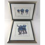 ALEXANDER MILLAR. A super pair of humorous prints. 'AND THEY'RE OFF' 47cm x 37cm. 'ONE STEP FORWARD AND TWO BACK' 41cm x 47cm