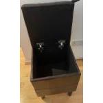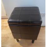 A brown faux leather STORAGE pouffe with lid - dimensions 18" square approx - as new condition!