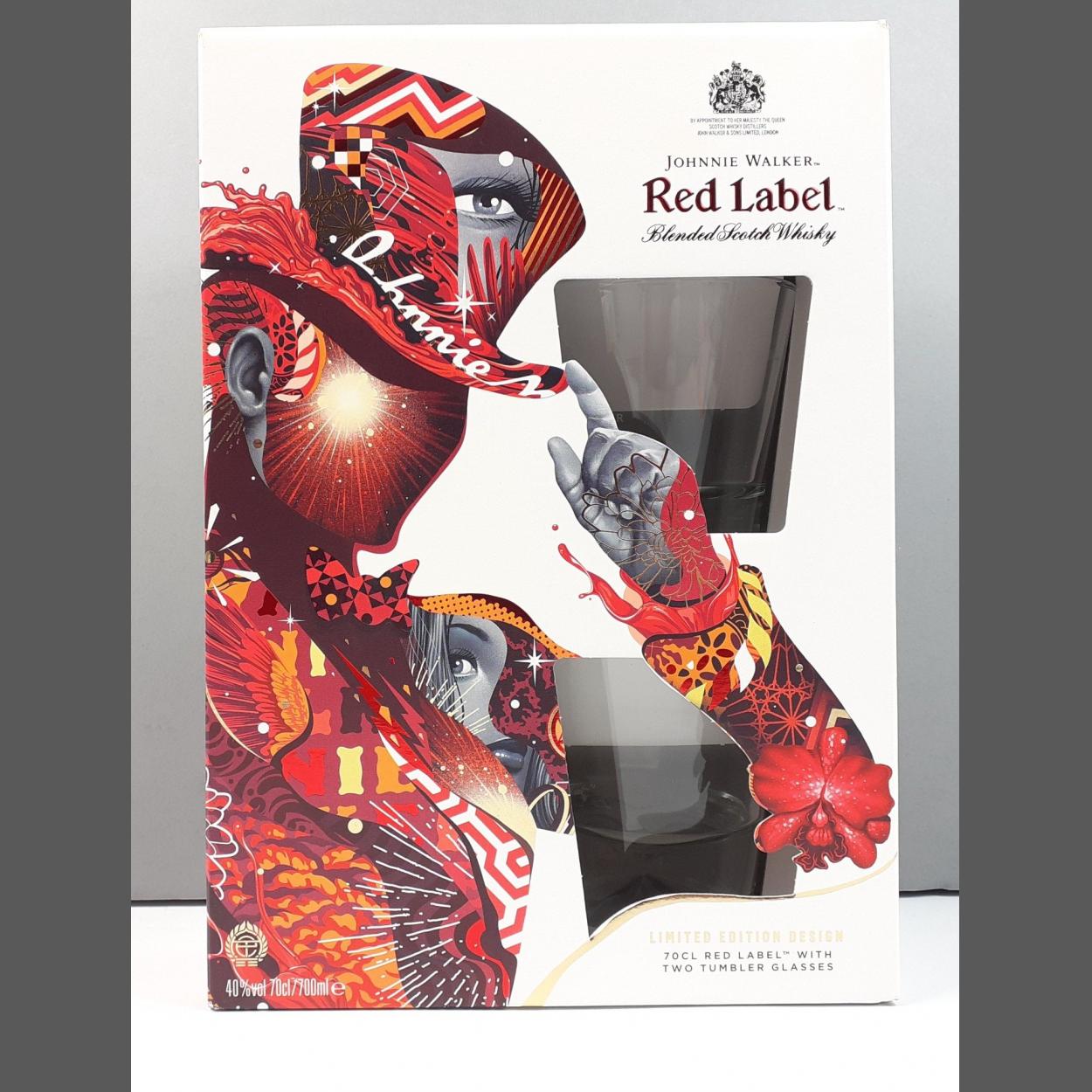 A JOHNNIE WALKER Red Label whisky, 70cl, gift set with 2 tumblers