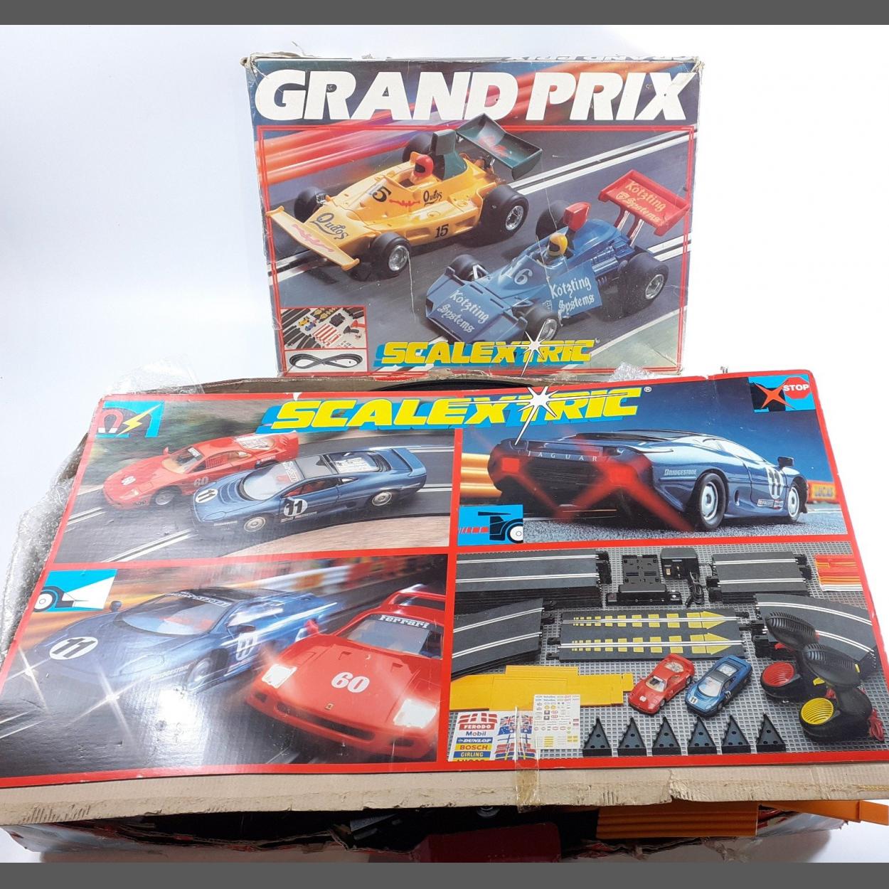 SCALEXTRIC Jaguar Challenge with three cars in used but good condition and much track and one other box with a small amount of accessories