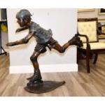 This hand cast bronze art sculpture of a skater stands just under 4ft high. Great detail throughout and has a highly polished finish. H: 108cm W: 118cm D: 75cm