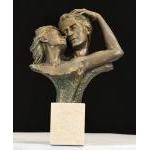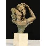 This beautiful Spanish sculpture of an embracing couple has been cast from composite stone and sits on a solid marble base. It has a hand painted finish with gold tones throughout.. H: 43cm W: 29cm D: 17cm