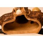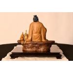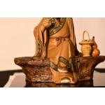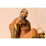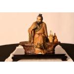 A Shiwan original figure of a finely detailed man on a bench comes with a wooden plinth. Origin Foshan. Guangdong Province circa 1990s. Condition Good.. H: 35cm W: 32cm D: 25cm