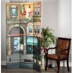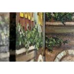 This very rare and unusual wonderful piece of original art is in the form of a folding screen/room divider. This stunning art piece has been completely painted by hand and signed by the artist MARK ST JOHN (American 20th C). The artist has used a very thick application of paint on the painting and this gives it a wonderful aesthetic. A rare opportunity to obtain an original painting in this form by this artist, most of his work is in standard canvas form and also in print. Note: The panels could be detached from the hinges and used a 3 panel wall display.. H: 142cm W: 214cm D: 4cm