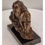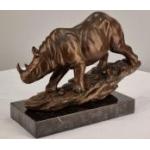 A bronze casting of a Rhino with well sculpted detail on sold marble base. H: 22cm W: 28cm D: 12cm