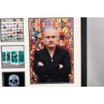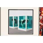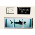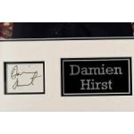 This framed presentation of the world renowned artist DAMIEN HIRST is a great memorabilia collector's item. Hirst's authenticated original signature is incorporated within the presentation which includes famous images of his "cow in formaldehyde" and the diamond skull work of art "for the love of god" note: this item will be supplied with a certificate of authenticity (free of charge). H: 89cm W: 67cm D: 3cm