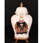 A pair of King and Queen hand painted porcelain temple vases origin Chaozhou Guangdong Province circa 1990s Condition Good. H: 45cm W: 25cm D: 15cm