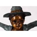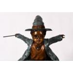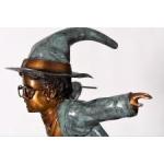 A wonderful hand cast bronze figure of a wizard that stands around 4ft high. It has been skilfully hand finished with lovely green and bronze tones and highly polished. It is a very heavy piece due to the amount of bronze used in the casting. Please check the sizes as it is a very substantial sculpture.. H: 126cm W: 76cm D: 89cm