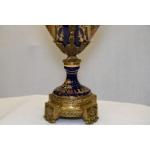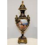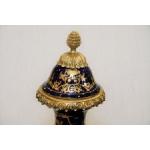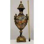 A hand made Chinese porcelain trophy vase with high grade painting and gold detailed finish. Origin Shantou Circa 1990 Condition Good One Temple jar only in this lot.. H: 84cm W: 27cm D: 21cm