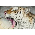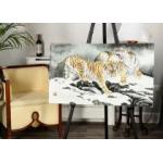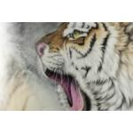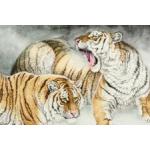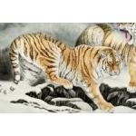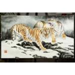 A high quality Chinese original painting with very fine detail on a porcelain panel depicting two Siberian tigers. Origin Jingdezhen Circa 1990 Condition excellent.. H: 60cm W: 103cm D: 1cm