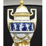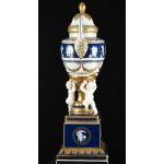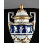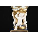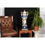 This fine oriental porcelain temple jar is beautifully cast with great detail in the cherubs and artwork in the centre band. This is a very large porcelain piece so please check the sizes.. H: 74cm W: 23cm D: 23cm