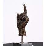 This wonderfully obscure solid bronze casting of a human hand sits on a black marble base.. H: 38cm W: 14cm D: 10cm