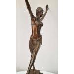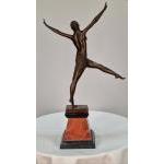 A bronze sculpture of a dancer with well sculpted detail on solid marble base. H: 60cm W: 40cm D: 15cm