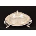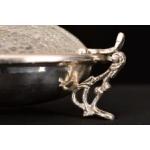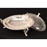 This very fine metal bowl is finely detailed with a crackle finished glass lid.. H: 14cm W: 28cm D: 28cm