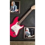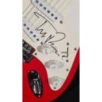 A framed guitar bearing the original signature of the famous musician TOM PETTY. Framed in a wonderful unique presentation. Note: this item will be supplied with a certificate of authenticity (free of charge). H: 120cm W: 100cm D: 8cm
