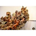 A unique very large finely detailed Chinese hand carved soapstone carving of 40 galloping horses. Condition vey good. Origin Fujian Province Circa 1980. H: 152cm W: 73cm D: 45cm