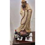 An original hand made Shiwan porcelain sculpture of an Oriental monk. Beautifully detailed and complete with wooden base. Origin Foshan Guangdong Province circa 1990s. Condition excellent. . H: 85cm W: 46cm D: 47cm