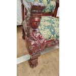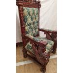 A hand made solid mahogany King's chair standing almost 6ft high. Hand carved detail throughout. . H: 174cm W: 96cm D: 80cm