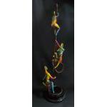 An unusual hand cast bronze art sculpture of three climbers on a rope. The climbers multi-coloured art work is hand painted then lacquered. This heavy art piece sits on a solid black marble base. Condition is excellent.