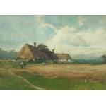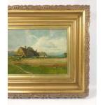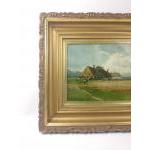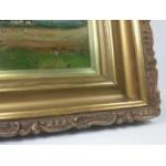 A framed and glazed oil painting by D. CAMERON of a Highland scene. The frame which carries stickers for a CHRISTIE'S catalogue measures 54x44cm approx and the visible work measures 33x24cm approx. There is some historical crackling to one small part of the surface.