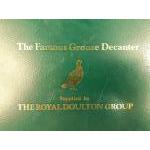 A lovely FAMOUS GROUSE Finest Scotch Whisky decanter with contents 75cl. In presentation box which does have some wear. Originally launched alongside The Grouse Brand in 1896, The Famous Grouse was the third blend registered by Matthew Gloag & Sons, following on from the Brig o' Perth the year earlier. Priced lowest, The Famous Grouse proved to be the most popular of the three, and was officially trademarked by the company in 1905. Today is has become one of the most recognisable brands in the whole Scotch whisky world, and under the ownership of Highland Distillers became the first blend to have its own visitor centre, formerly located at the Glenturret distillery. The brand passed from the Gloag family to Highland Distillers in 1970, and is now owned by Edrington. Despite having lost its spiritual home with the sale of Glenturret in 2019, The Famous Grouse remains as popular as ever. This is a very attractive display piece.