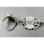 A CELTIC KNOT brooch (40mm length), silver stamped 925 with onyx stone (18x10mm), gross weight 7.75g approx plus a ring stamped 925 with central stone (10mm long), size K, gross weight 4.85g approx
