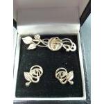 A set of RENNIE MACKINTOSH style brooch ( 5cm wide) and earrings, silver hallmarked (Edinburgh), made by CJL, total weight 10.82g approx