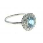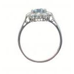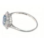 A stunningly beautiful aquamarine and diamond ring set in platinum, marked 18ctPLAT by A.H & S, size R, gross weight 3.6g approx. Aquamarine measures approx 7mm x 6mm surrounded by 12 clear diamonds