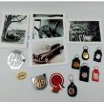 A great collection of MG keyrings and car badges. Includes an AA badge and others. Includes a large quanity of reprinted photots of MG interest