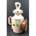 North British Railway guards handlamp stamped BULLPITT AND SONS BIRMINGHAM C&M 1887. Complete with all glasses, reservoir and burner. Note inside ' This lamp belonged to a Mr Downie a driver who retired in 1935. He used to drive goods trains down the Borders County Railway. Mr Downies son also was a fitter at St Margaret's Engine Sheds. He later left the railway to become and engineer at Portobello Power station. The lamp has been heavily overpainted in white.