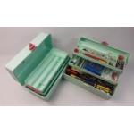 Two useful tackle storage boxes. One empty and one with a small collection of tools.
