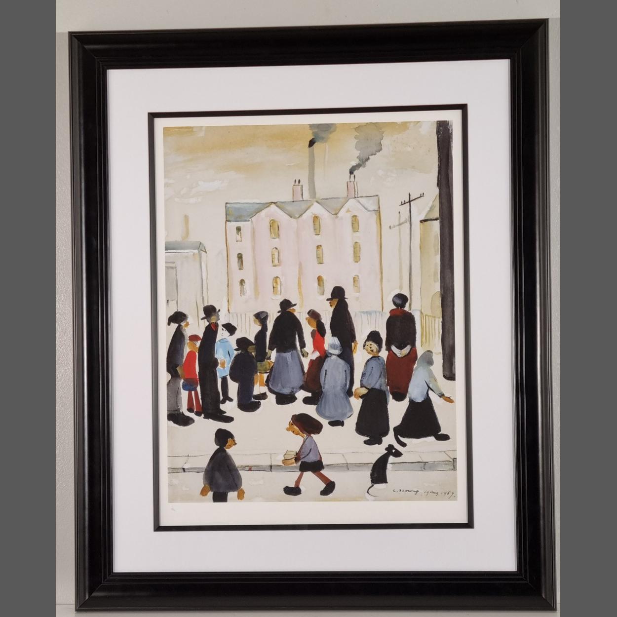 Limited Edition by L.S. Lowry, titled "Group of People, 1959" this is one from an edition of only 75 published worldwide. It is franked and numbered at the bottom right hand corner of the piece. Supplied with a certificate of authenticity signed by the Master Printer. A replacement valuation for £1500 will also be supplied, free of charge. Professionally framed and bespoke mount. Condition is excellent.