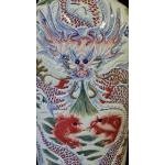 An absolutely stunning original handmade porcelain vase which stands just over 7ft. The vase has great detail with serpents and fish which are all embossed into the vase. This vase is in superb condition for its age and virtually looks new. Origin Foshan Guangdong Province China Circa 1970s.. H: 220cm W: 55cm D: 55cm