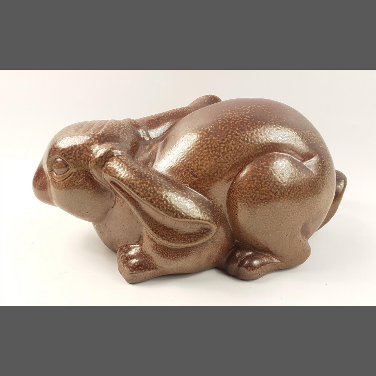 A very attractive long-eared earthenware glazed rabbit, 33cm long