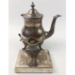 A VINER'S silver plate ornate teapot with detached handle, 21cm to finial and a chrome card case 13cm width