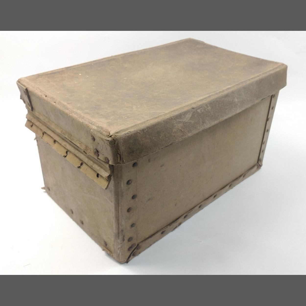 A scarce late WWII Battle of Berlin utility flak tower ammunition shell case with Wehrmacht stamp just distinguishable by catch. Sturdy cardboard construction with some wear with original wood and leather carry handle. Lid has become detached D42 x W24 x H24cm approx