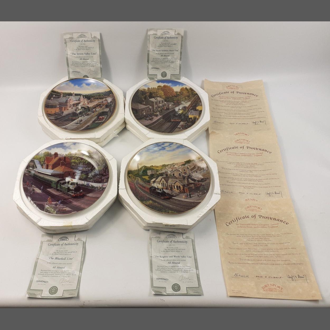 Four DAVENPORT collectable plates of train interest to include The Bluebell Line, The Severn Valley Line, the North Yorkshire Moors Line and All Aboard