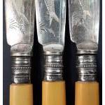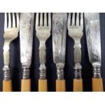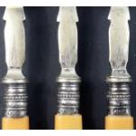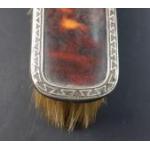 Three silver fish knives and forks, hallmarked for Sheffield at various dates, plus a tortoise-shell backed clothes brush with silver mount hallmarked for Birmingham 1922