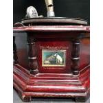 An HMV gramophone in working order with large brass horn and winding handle on an octagonal wood varnished base with lovely original Nipper logo. Comes with one 75rpm shellac disk