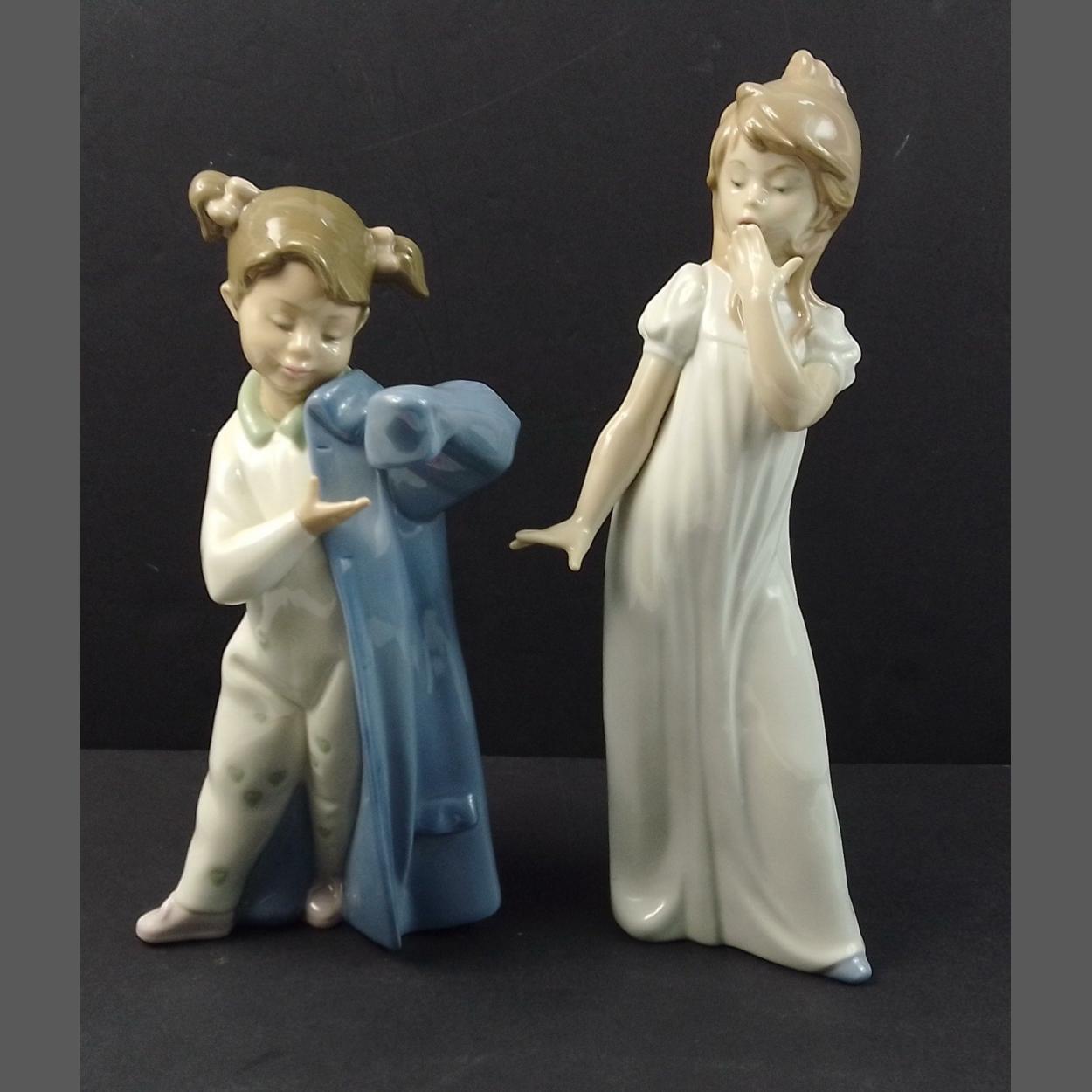 Two pretty sleepy NAO children getting ready for bed, the taller 28cm approx, both in excellent condition