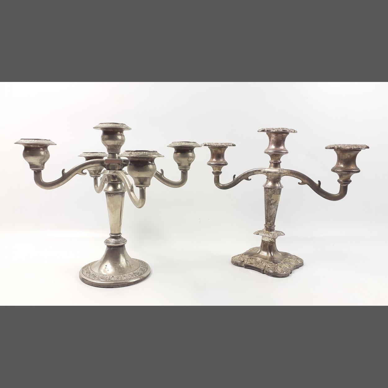 Two candelabra one with 3 branches, 25cm high and one with 2 candle holders