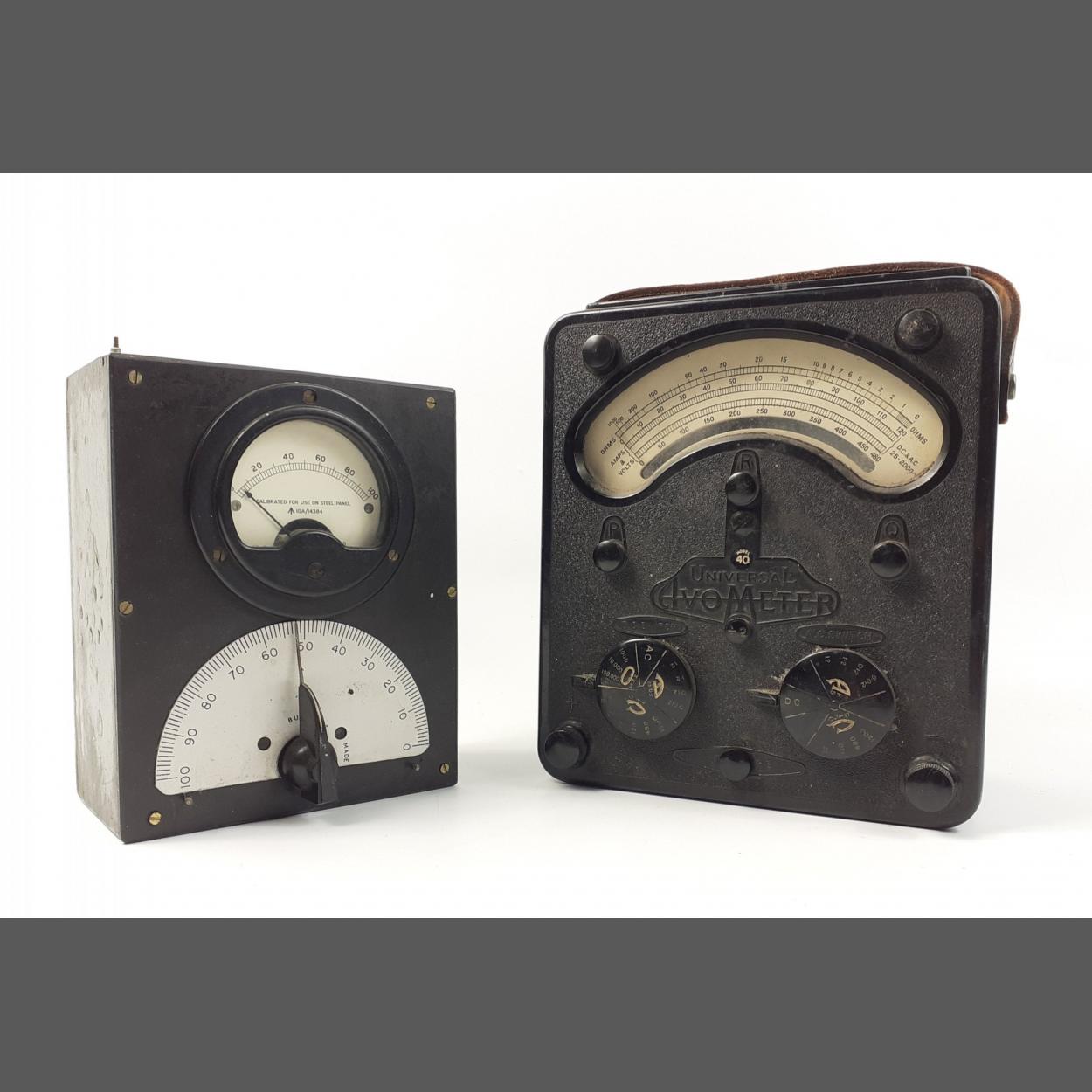 An interesting electronic pair, a wooden boxed military marked BULGEN made meter (AF) with a UNIVERSAL avometer model 40