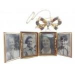 A very pretty decorative 4 panel locket brooch with safety chain suspended from a bow set with a clear stone 5cm long