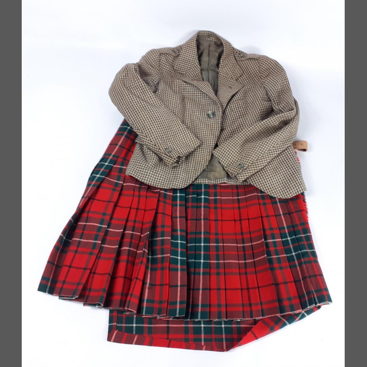 A Mackinnon tartan kilt, no maker's name waist 28-30" approx, length 22", plus a child's tweed jacket, chest 28" approx