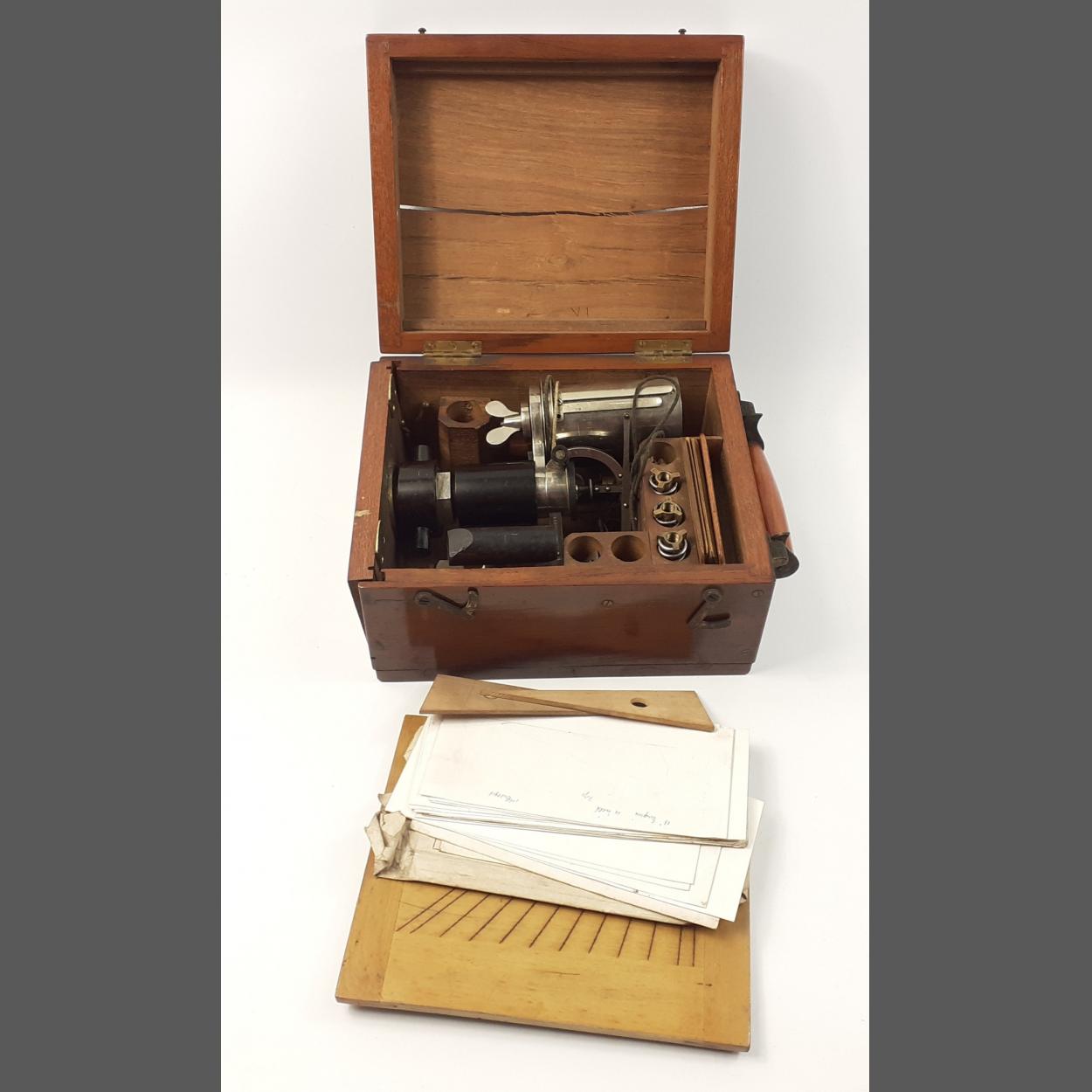 A cased WIND SPEED INDICATOR by TS McINNES in lovely original case which has a crack to the lid