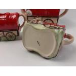 Wagons Roll! A pretty little English made unbranded teapot, sugar and creamer. A few minor spots of paint loss but no damage