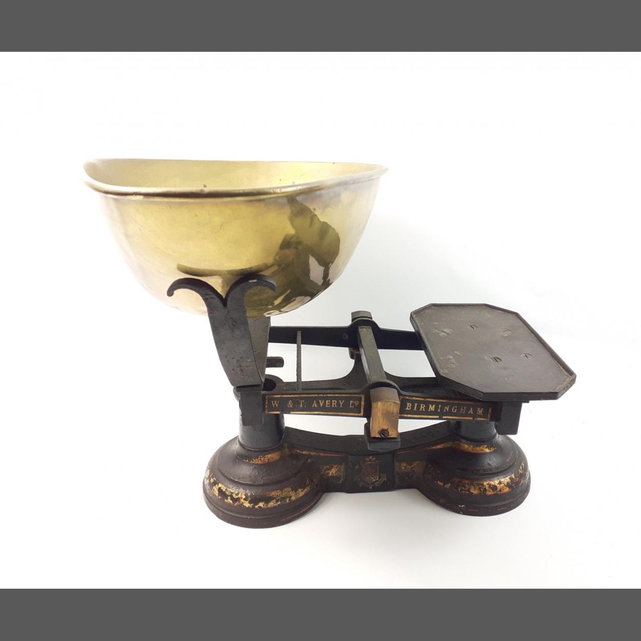 A large, substantial W&T AVERY of Birmingham set of vintage shop scales with large brass pan, no weights