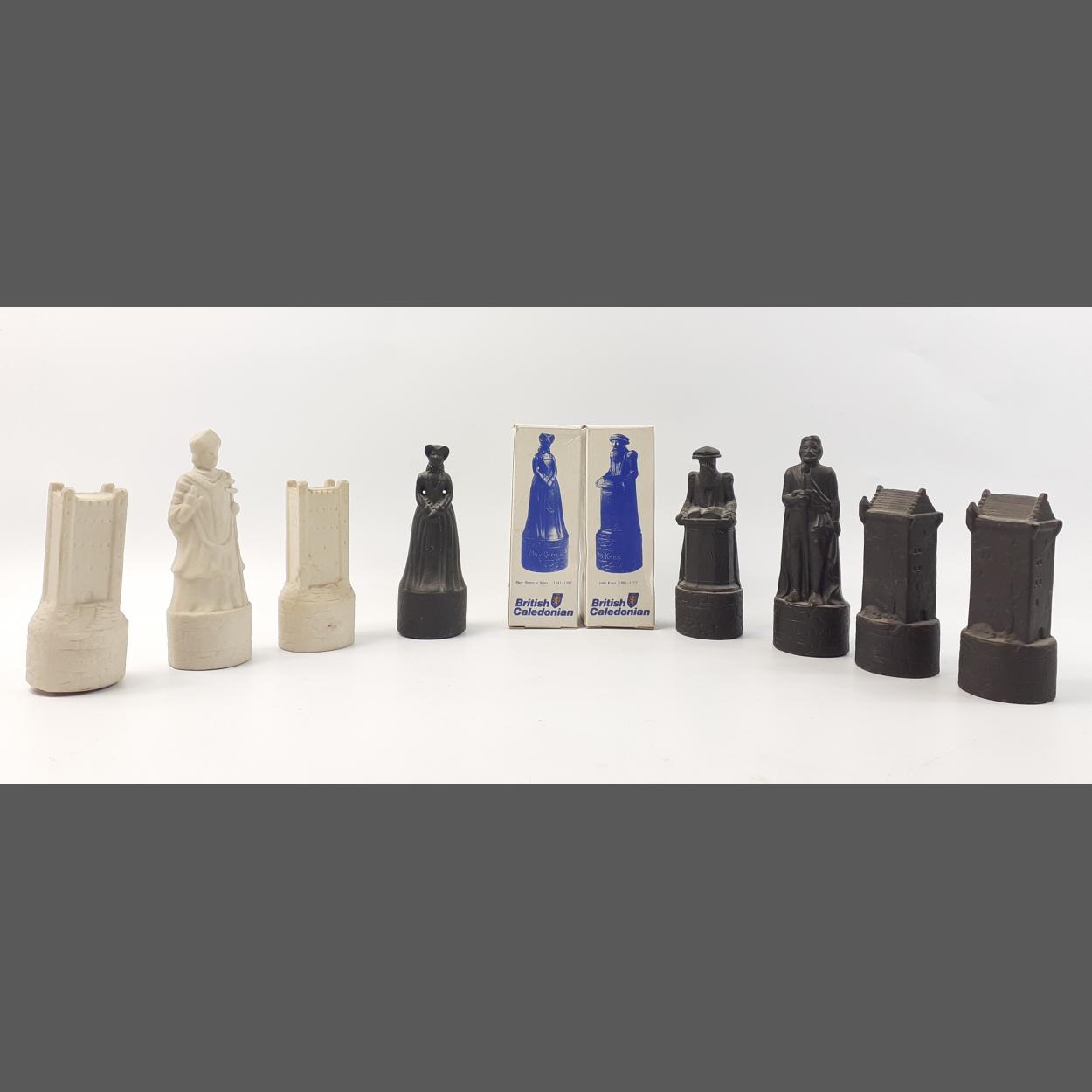 A small collection of BENEAGLES The Thistle and the Rose chess pieces given as inflight gifts to passengers travelling first class with British Caledonian (2 in boxes) each approx 14cm high